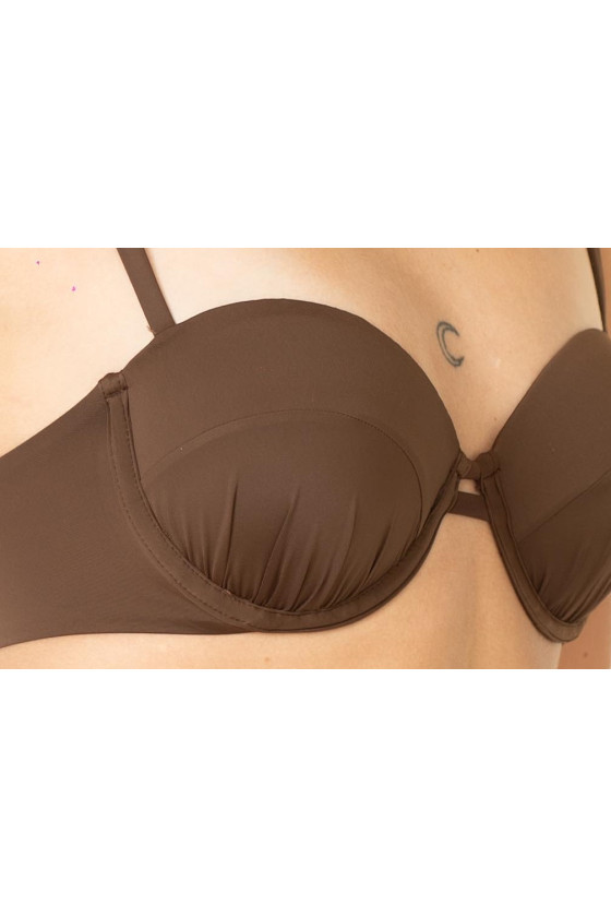 Top de bikini Cala en color café, de calce cómodo y diseño clásico que estiliza la figura. Confeccionado en lycra y spandex de alta calidad para mayor suavidad, soporte y durabilidad.